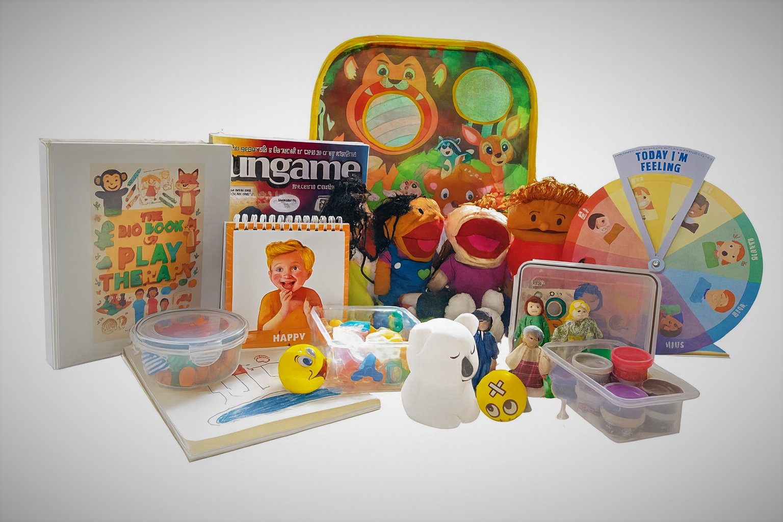 Play Therapy on Wheels is a groundbreaking way to bring client-focused play therapy to young clients.  Housed in a durable, foldable cart, this mobile toolkit makes it easy to transport play therapy essentials—whether you’re moving between offices, visiting schools, or conducting home sessions.